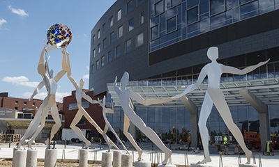 This uplifting, multi-figural sculpture sets a tone of celebration and collaboration as visitors arrive at the new main entrance of Summa Health System Akron Campus.