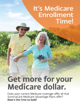 It’s Medicare Enrollment Time! Get more for your Medicare dollar. Does your current Medicare coverage offer all that SummaCare Medicare Advantage Plans offer? Now’s the time to look!