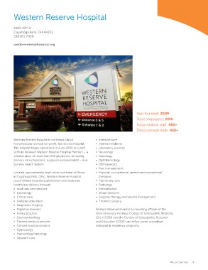 Western Reserve Hospital is northeast Ohio’s Year founded: 2009
